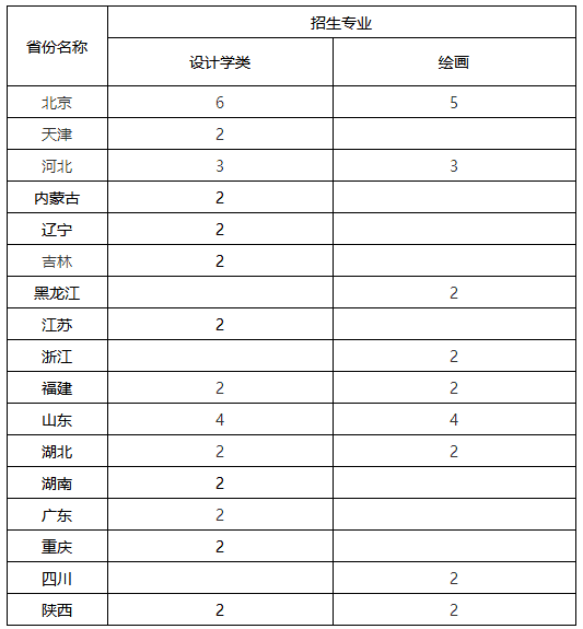 2.根据各省级招生考试机构要求,艺术类(美术)须分科类投档录取的省(区、市)招文科或历史类,不分科类投档录取的省(区、市)不限考生科类。各专业分省招生计划以各省级招生考试机构实际公布的为准。